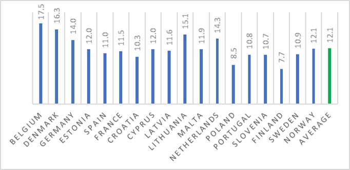 Figure 2: Payback time (years) by country. Ireland, Greece, and Italy are not included in the calculations due to lack of data.