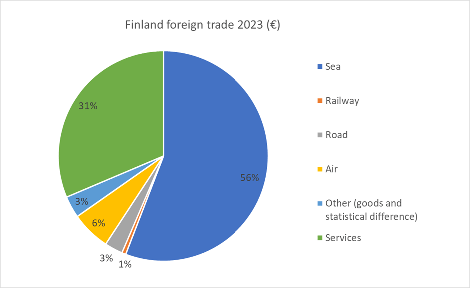 Finland’s economy is highly dependent on world trade. Due to its geographical location, sea transport is the most significant form of transport in Finland – especially now that trade with Russia has decreased considerably.
