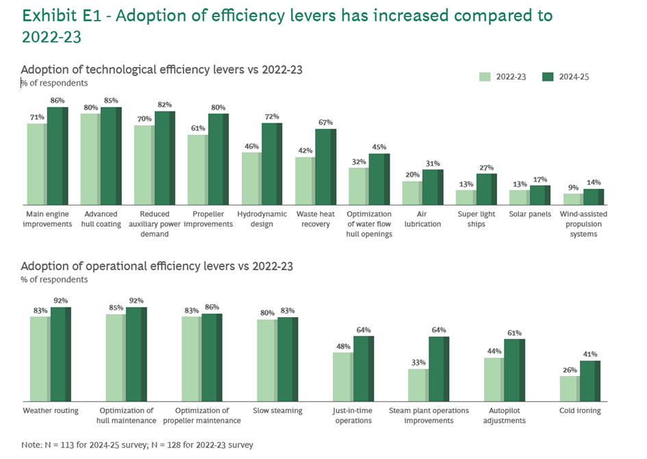 Figure 1. Adoption of the use of maritime efficiency measures in the interviewed companies (source: Kuttan et al. 2025)